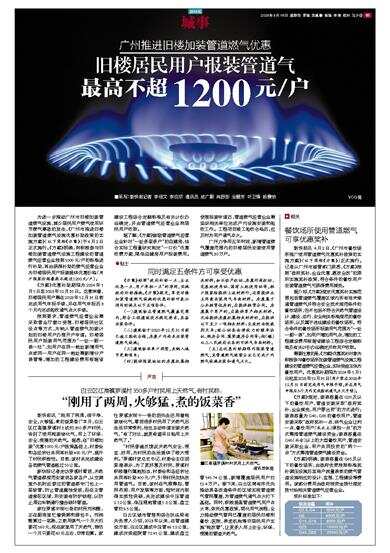 广州力争用五年时间,新增管道燃气覆盖范围内的旧楼居民安装使用管道燃气30万户。