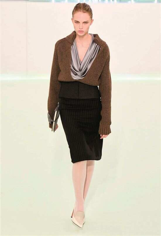 铅笔裙作为这一风格的核心单品,同时也是今年春夏流行半裙中的一员,更多面料和元素被应用过来。