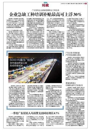 按收入来源分,一季度广东居民人均工资性收入9929元,同比增长5.7%;人均经营净收入1743元,同比增长8.7%;人均财产净收入2069元,同比增长5.5%;人均转移净收入972元,同比增长7.1%。
