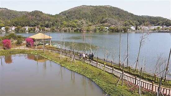 沥青道路自由向前,一侧湖泊碧波粼粼,一侧民宅雅致清新,“梦里水乡”走入现实、映入眼帘……驻丙村镇工作队介绍,近年来,他们积极助力石窟河沿线精品旅游线路打造,先后投入20多万元支持“小白沙”美丽乡村建设,美丽农村公路建设和乡村风貌修复提升项目去年整体完成了打造,美丽宜居、幸福慢村、梦里水乡、人居典范示范点得以呈现。