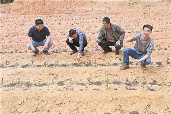 此前工作队了解到,山苍子浑身是宝,不但能入药,花、叶和果皮都是主要提制柠檬醛的原料,产品结果后可广泛用于医药制品和配制香精。工作队找到梅州市农林科学院林业研究所,成功获得一批种苗支持。据介绍,目前这批山苍子长势很好,根据生长周期,三到五年就能挂果、丰产。