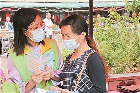 ■肇庆志愿者为市民宣讲小额贷款政策。
