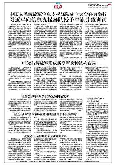 据新华社电 中国人民解放军信息支援部队成立大会19日在北京八一大楼隆重举行。中共中央总书记、国家主席、中央军委主席习近平向信息支援部队授予军旗并致训词,代表党中央和中央军委向信息支援部队全体官兵致以热烈祝贺。他强调,要贯彻新时代强军思想,贯彻新时代军事战略方针,坚持政治建军、改革强军、科技强军、人才强军、依法治军,聚焦备战打仗,按照体系融合、全域支撑的战略要求,锐意进取,扎实工作,努力建设一支强大的现代化信息支援部队。