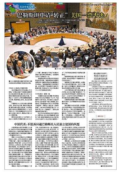 美国18日在联合国安理会否决了一项关于巴勒斯坦申请成为联合国正式会员国的决议草案。巴方批评美国言行不一,“不道德”。