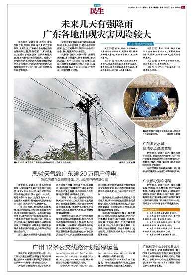 新快报讯 记者王敌 许力夫 通讯员程正泉 屈凤秋报道 据气象部门监测预报,未来几天,广东省内各地将有连续性强降雨过程,降雨范围广、累计雨量大,出现中小河流洪水、山洪和地质灾害、城乡内涝等灾害风险较大。根据《广东省防汛防旱防风防冻应急预案》和省防总有关规定,广东省防汛防旱防风总指挥部决定于4月19日10时启动防汛Ⅳ级应急响应。