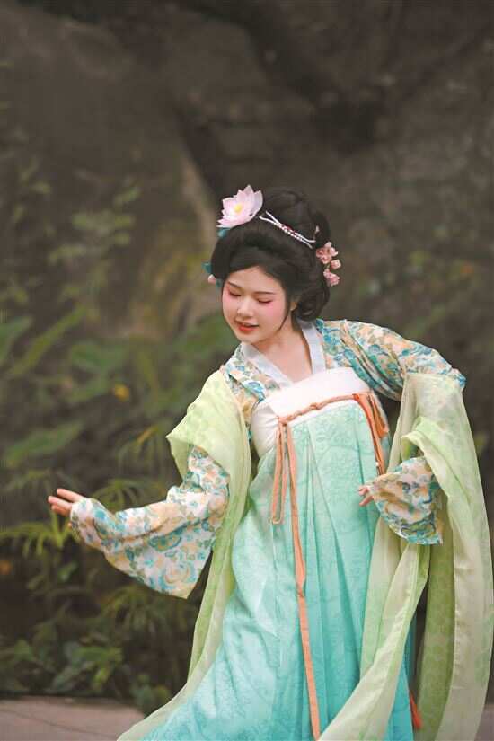 饰演杨贵妃的刘玉平,是第二年参加“兰缘盛荟”,她在园中翩翩起舞了五天,“为参加这个活动,我专门请了年假。”她告诉记者。