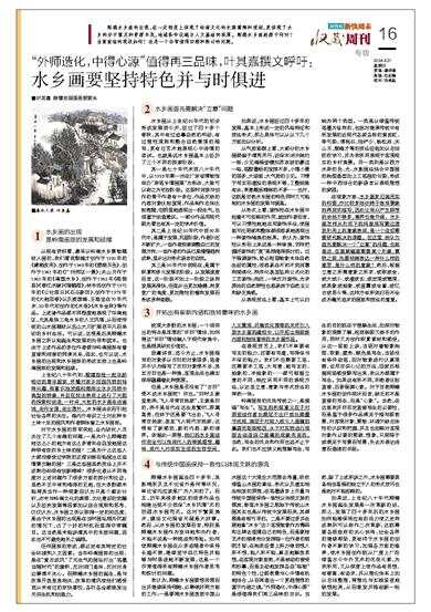 我认为,顺德水乡画要想突围而出并继续保持领跑,必需做好两方面的工作:一是要将水乡画放到中国山水画这个大观念大范围去考量,吸收借鉴山水画的章法、形式以及虚实相生相发的原理,在笔墨语言上尽量与传统中国画保持一致性以体现文脉的源流,彰显水乡画之脱胎于传统山水画其实也是从传统中发展而来,其渊源是有根可寻的。二是不要过多并生硬地拿“水乡”这个客观物象作为筹码和王牌去显摆自己的特色,而是要按艺术的规律充分发挥每一位作者的聪明才智,在构思经营上努力做到想人所不想,能人所不能,真正地解放思想,在客观对象面前,不是被动的接受和抄摹,而是主动地发挥各自“格物”的特色个性,让眼前景与心中情有机地结合,从而再造出一个更趋理想的富于内涵之境。“外师造化,中得心源”是很值得我们再三品味的古训。当然,除了上述所讲之外,水乡画需要具备相当高强的独立于人的形式技巧也是绝对不能忽略的。