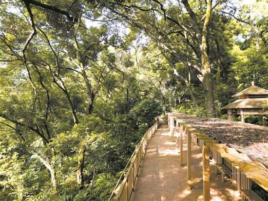 高村有条“小青龙”,游人“乘龙”而行,步步皆景,惊喜无穷。“这是古树群的栈道,因为它蜿蜒起伏、高低不平,村民就给它一个‘小青龙’的昵称。”路遇高村人,无论长幼,都会手指“龙身”,一脸笑意地解释“青龙”的来历。其实,这条长达1400米的木栈道,是循古道旧迹串联而成,因应高村近年蓬勃发展的乡村游、生态游而建。令人欣慰的是,在方便游人参观的同时,它更拉近了村民与古树的距离,如今俨然已是孩子们嬉戏的跑道、老人们健身的步道。
