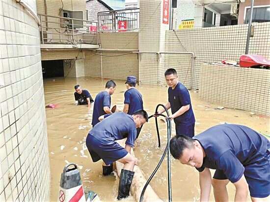 森林消防大队9名队员及排涝车、装备车等排涝设备一到达现场,就迅速架设泵车、铺设水带,开展排涝作业。“我们24小时轮排作战。有后勤部门每天打盒饭过来。睡觉就在现场,有时候是车上,有时候是地上,每天眯五六个小时,希望能尽早排除险情。”林庆告诉记者。21日夜晚,经过近50个小时的连续工作,高铁站的积水终于排出,排水量达45000立方。