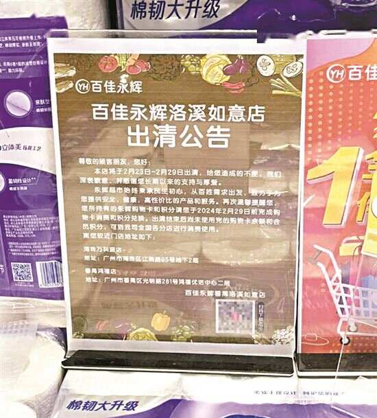 百佳永辉广州番禺洛溪如意店发布“出清公告”。