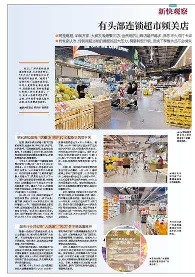 近期,多家头部连锁超市旗下门店部分闭店,包括永辉、华润万家、沃尔玛、大润发等。记者梳理发现,这些结业的超市,不少是营业了20余年的,其关闭的理由或是场租到期或是经营承压,亦或是整体布局、转型需求。