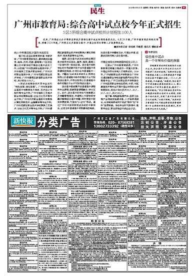 近来,广州将在公办中等职业学校开展综合高中试点的消息备受关注。4月24日晚,广州市教育局发布相关消息,明确2024年起,广州将正式开展综合高中、中高企协同长学制人才培养等试点。