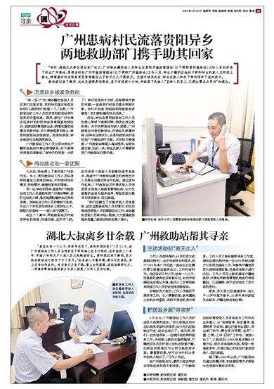 “有一名(广州)南沙籍的受助人员在我们这里求助,我把他的基本信息发给你们,麻烦你们核查一下。”此前,广州救助站的工作人员收到贵阳救助站同行发来的协查信息。原来,家住广州市南沙区某村的村民钟生身患强直性脊柱炎,因家庭琐事离家出走,病情加重的他漂泊到贵州省,不久便流落贵阳街头,被贵阳救助站发现救助。因身体原因,钟生被送往当地医院救治。