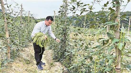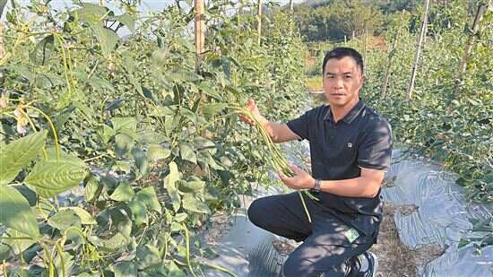 ■杜国龙全程参与了荒地变基地,如今田地里豇豆正丰收。