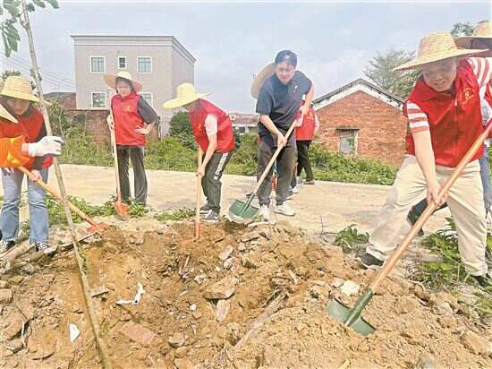 ■刘炜(黑衣)参与绿美乡村植树活动。