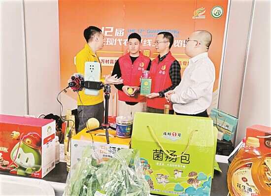 ■参加省农博会,温锦君(右二)推介新塘村的农特产品。