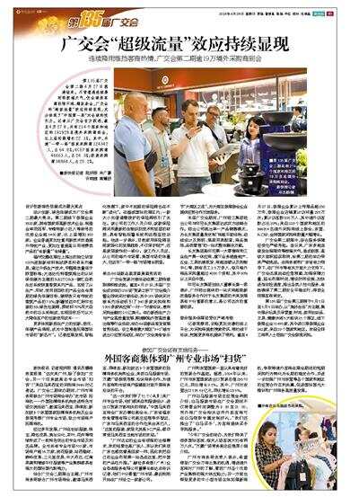 新快报讯 记者陆妍思 通讯员穗商务宣报道 “这次来广州,除了参加广交会,另一个任务就是去专业市场‘扫货’!”来自马来西亚的采购商Petty对记者说。广交会二期举办期间,广州市商务局联合广州市场商会举办“走市场 拓商机——外国驻穗商务机构走进特色市场交流活动”,邀请马来西亚、菲律宾、新加坡3个东盟国家驻穗商务机构及企业参观考察广州专业市场,助力市场商户拓展商机。