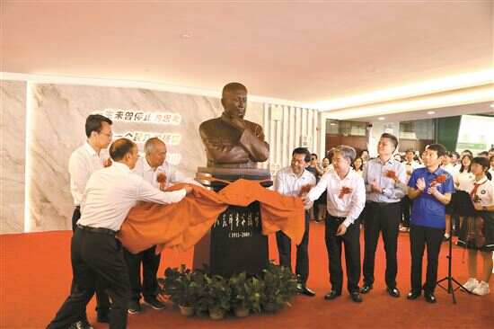■4月27日,广州市培英中学迎来145周年校庆。当天,该校举行钱学森班授牌仪式,并邀请钱学森之子钱永刚教授与嘉宾一起为钱学森铜像揭幕。 新快报记者 郭晴/摄