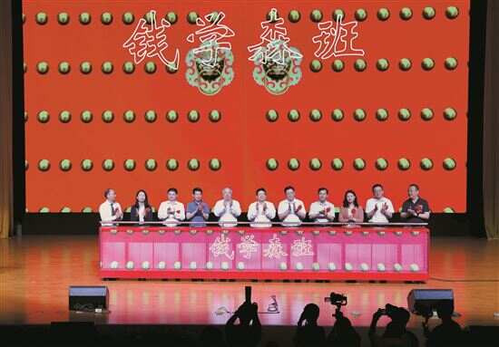 当天9时30分,创校145周年暨钱学森班授牌仪式大会在培英中学云城校区白绿厅拉开帷幕。学生演出过后,钱学森教育工作委员会副秘书长鲁鸣宣读《钱学森班冠名申请批复》。“两弹一星”元勋钱学森之子、钱学森教育工作委员会主任委员钱永刚教授上台为培英中学“钱学森班”授牌,广州市首个钱学森班正式落地。