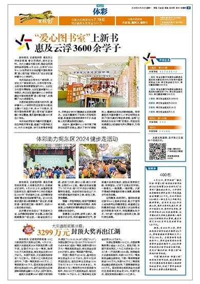 新快报讯 记者陆妍思 通讯员云浮体彩报道 春日芳菲好,读书正当时。为大力建设书香云浮,推动全民阅读向纵深发展,4月23日,云浮市“2024年4·23世界读书日活动暨中国体育彩票‘爱心图书室’资助仪式”在云安区富林镇中心小学举行。