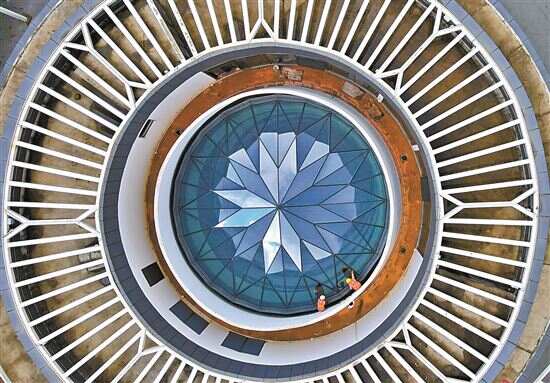 ■2023年6月9日,广州知识城广场项目二期工程通过竣工验收,工人正在对楼顶进行清洁打扫。
