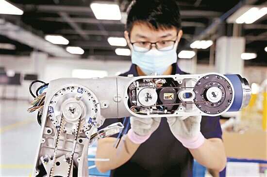■2022年8月12日,位于东莞松山湖的一家机器人制造企业,工作人员正在进行设备的组装。