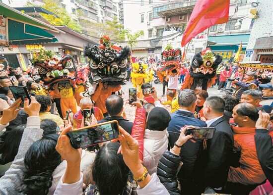 其中,传统习俗“菩萨行乡”活动最吸引人,抬北帝、陆上龙舟、舞龙、醒狮等极具广府特色的游行队伍绕村巡游,市民纷纷拍照留念。