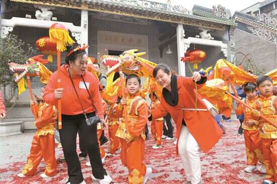 当天中午,杨箕村祠堂庙会还特别邀请村民群众自发组织的曲艺社,现场搭台献艺;夜晚更有精彩纷呈的龙狮表演。“祠堂庙会的举办能够吸引更多的广府文化爱好者,让年味变得更浓更长久,广府文化也逐渐融入人们生活。”杨箕股份合作经济联社董事姚海胜说。