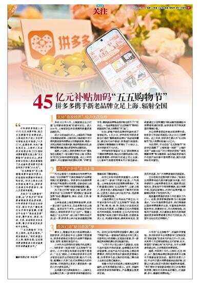 作为全国首个大规模综合性消费节庆活动,“五五购物节”已是加强海内外品牌宣传推介的重要窗口。拼多多作为连接消费者与生产制造源头的桥梁,在联动线上线下、“沪里沪外”消费方面发挥着重要力量。