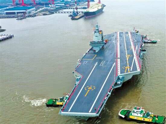 ■1日8时许,我国第三艘航空母舰福建舰从上海江南造船厂码头解缆启航,赴相关海域开展首次航行试验。新华社发