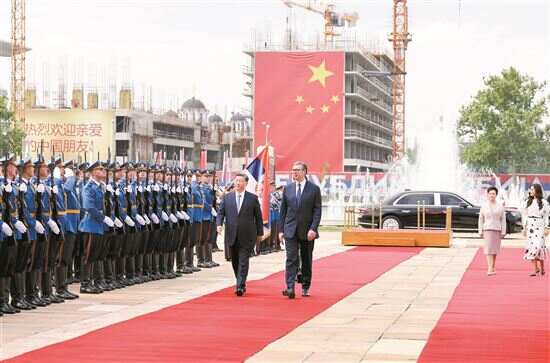 5月的贝尔格莱德,阳光明媚。塞尔维亚大厦前,中塞两国国旗迎风飘扬,仪仗队威武雄壮。习近平和夫人彭丽媛乘车抵达时,塞尔维亚总统武契奇和夫人塔玛拉在下车处热情迎接。