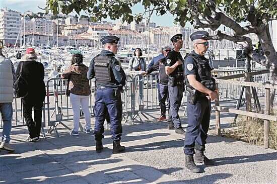 ■5月8日,警察在法国马赛老港警戒。