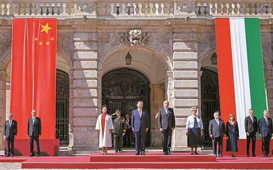 初夏时节的布达佩斯阳光明媚,古老宏伟的布达王宫庄严矗立,中匈两国国旗相映成辉。