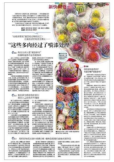 “这些多肉经过了喷漆处理,但使用的是植物油漆,没有气味的。”在记者询问颜色的由来时,一名店主作出了上述解释。