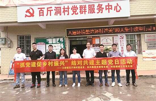 广州环投集团党委以“产业兴旺、生态宜居、乡风文明、治理有效、生活富裕”为工作总要求,制定帮扶工作计划,落实帮扶工作责任,推动广州环投集团总部党支部、环境集团党总支、永兴股份本部党支部、环投增城公司党支部、环投从化公司党支部与三排镇行政村党组织建立党建共建关系5对。