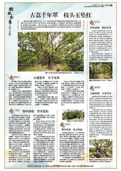 何树志告诉记者,尽管根子荔枝曾因“一骑红尘妃子笑”而成为大唐荔乡,但实际上,根子的荔枝自2000年前已开始成为达官贵人案上珍品。贡园不仅仅是唐朝的贡园,更是在2000年时光轴上一直存在的贡园。在他的记忆里,童年最快乐的时光都与古树有关。