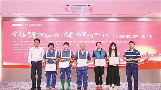 劳动实践,为人民群众带来福祉,营造更美好的生活、更和谐的社会。4月30日,在“五一”国际劳动节到来之际,由广东省民政厅、广东省社会科学院、羊城晚报报业集团指导,广东新快报社、建设银行广州分行主办,广州市民政局、广东公益恤孤助学促进会联合主办,五山街道党工委、五山街道办事处、广州市天河区嘉禧社会工作服务中心党支部、广州市五山街社工服务站、广东嘉禧养老服务有限公司、嘉禧中医医院协办,广东新快报社、建行广州分行携手社会各界,在广州中创汇·赛宝科技园举行“礼赞劳动者建功新时代”公益圆梦活动,向全体工人和广大劳动群众献上诚挚祝福。