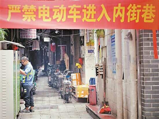 新快报记者走访发现,虽然抗英大街每一个内巷的入口都挂着红色横幅,提醒居民不要将电动车停放进内巷,但不少内巷仍停着电动车。有治保队员透露,之前曾经组织过多次清理行动,但仍有人或不自觉、或贪方便就将车停在住所的楼下。他在言谈之间对“禁停电动车”措施充满了期待:“我也住在这里,平时也开电动车,为了安全多走10来分钟路应该没有问题。”而作为治保队员,“禁停电动车”后他的工作能轻松一些。“有些人乱停车就是不听劝,我们劝说很久,或者强行把车推走,但不能从根本上解决问题”。