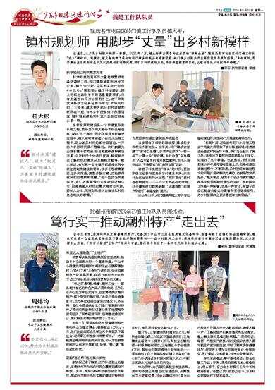 在基层,人才是乡村振兴的第一资源。2021年7月,植大彬作为具备专业素质的“新鲜血液”,随驻茂名市电白区岭门镇工作队“注入”镇村中。驻镇后,植大彬绘制了最初的岭门镇乡村振兴战略推进图、岭门镇乡村振兴产业高质量发展规划图等,“乡村规划,是要解决基层规划专业不足以及规划落地等问题,我们以科学规划为先,将宏伟蓝图落到实处,让镇村居民从中获得幸福感。”