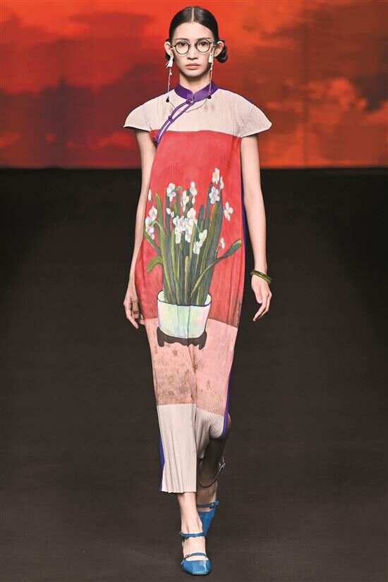 从长裙到八分裙、六分裙,长度的变化适应更多的场合;从厚实的毛织到轻薄的棉麻、真丝,质地的改良符合不同季节穿着场景的需求;图案、剪裁、色彩……今天,从历史中走来的马面裙有着更多元的呈现,正因融入越来越多的时尚元素,马面裙有了更好的可塑性。