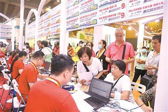 16日上午,记者探馆发现,汇聚多个旅行社的展馆吸引了大量市民,不少长者在现场咨询旅游产品的路线和价格。