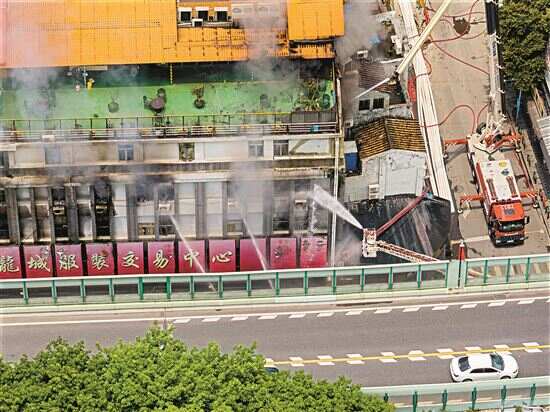 在隔壁市场开档口的蒋先生告诉记者,着火的龙城服装交易中心与隔壁的市场是互通结构。起火时,他看见龙城服装交易中心靠近和平东路的一侧着火,很多受困人员逃往楼顶被云梯救下。