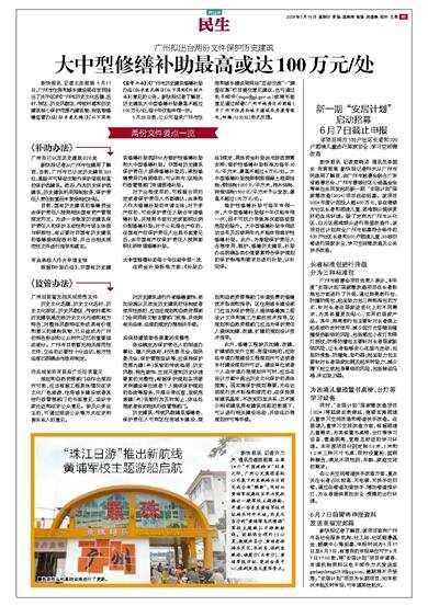 新快报讯 记者王彤报道 5月17日,广州市住房和城乡建设局在官网挂出了关于征求《广州市历史文化名镇、名村、街区、历史风貌区、传统村落和历史建筑核心保护范围内建筑物、构筑物修缮监管办法(征求意见稿)》(以下简称《监管办法》)《广州市历史建筑修缮补助办法(征求意见稿)》(以下简称《补助办法》)意见的公告。新快报记者了解到,历史建筑大中型修缮补助最高不超过100万元/处,每十年仅能申领一次。
