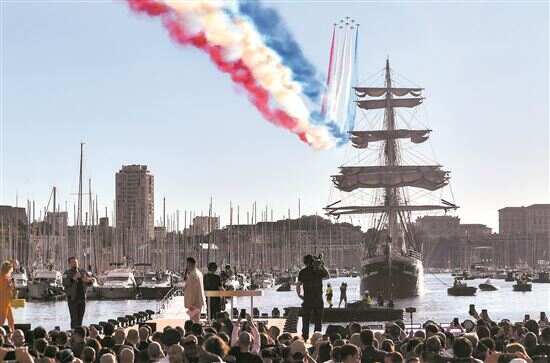 ■5月8日,搭载巴黎奥运会火种的“贝勒姆”号帆船抵达法国南部港口城市马赛。