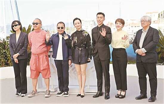 5月19日,在法国戛纳举行的第77届戛纳国际电影节上,导演贾樟柯(左三)携主创亮相影片《风流一代》拍照式。