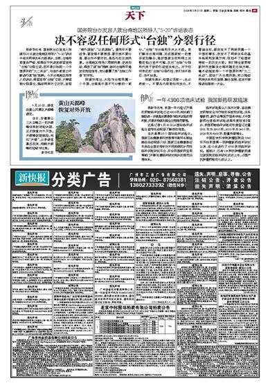 据新华社电 国务院台办发言人陈斌华20日就台湾地区领导人“5·20”讲话中有关两岸关系内容表示,当前,台海形势复杂严峻,根源在于民进党顽固坚持“台独”分裂立场,拒不承认体现一个中国原则的“九二共识”,勾连外部势力不断进行谋“独”挑衅。今天台湾地区领导人的讲话,顽固坚持“台独”立场,大肆宣扬分裂谬论,煽动两岸对立对抗,妄图“倚外谋独”、“以武谋独”。要和平不要战争、要发展不要衰退、要交流不要分离、要合作不要对抗,是岛内的主流民意。台湾地区领导人罔顾民意、逆流而动,释放了谋“独”挑衅、破坏台海和平稳定的危险信号,充分暴露了其“台独工作者”的本性。
