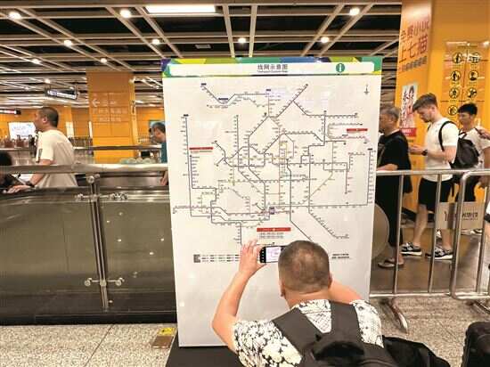 5月22日,新快报记者在广州南站看到了新版线网图。记者恰好还碰到了铁路迷拍照打卡,铁路迷还着重拍摄了线路图下方的城际图标。