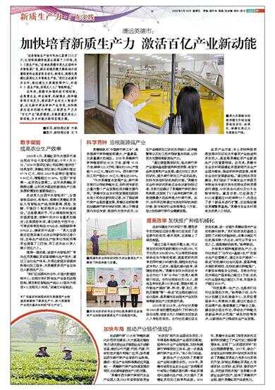 近年来,英德市加强科技引领创新,在智慧农业、种业培育、机械强农、延伸链条等方向发力,推动茶产业向无人智造升级,优化麻竹笋品种和产业布局,加快探索丝苗米机械化种植,以新质生产力为“百亿产业”提质增效,为高质量发展注入新动能,为乡村振兴提供坚强支撑。