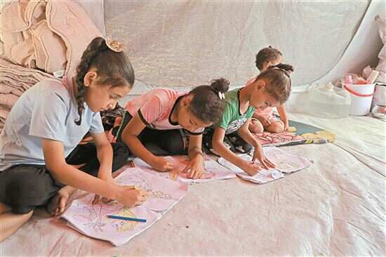 ■这是5月22日在加沙地带南部城市汗尤尼斯的一处难民营内拍摄的巴勒斯坦儿童。新华社发