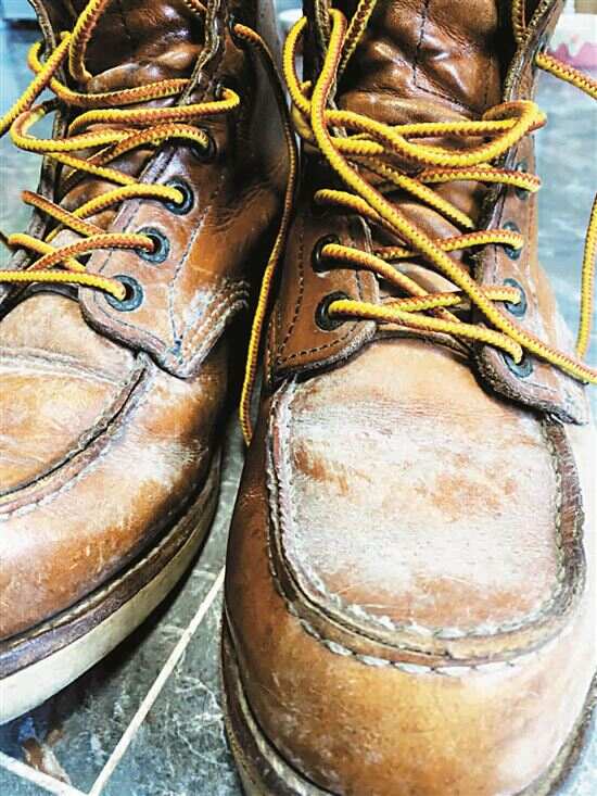 ■一位市民的靴子上长了一层霉。 新快报记者 毛毛雨/摄